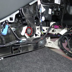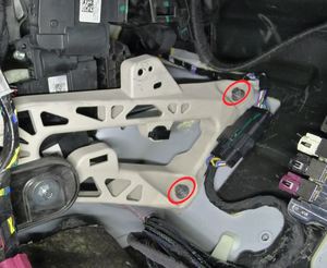 拆下将右侧托板下部支架固定到中控台的螺栓。