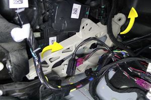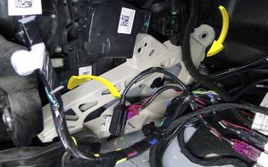 注绕过车身线束,摆动支架后部,将其放入仪表板支架。