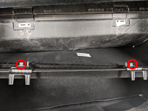 - 松开将后行李箱地毯固定到车辆的卡子(2 个)。