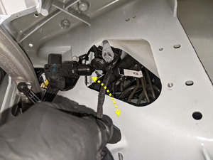 - 将前部主线束的左侧轮舱部分穿过车身推入前备箱盖。