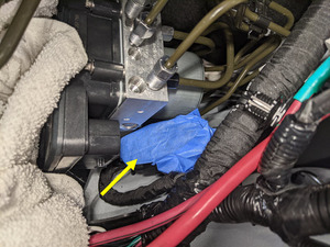 - 在液压控制单元 (HCU) 线束连接器上贴上胶带,以防止制动液泄漏到连接器中。