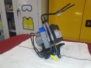 将液压控制单元 (HCU)、支架和制动管路作为总成从车辆上拆下。