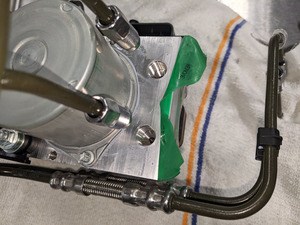 取下剩余的保护胶带,然后将 4 管束制动管路安装到液压控制单元 (HCU)。