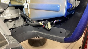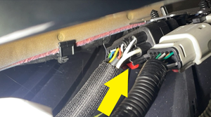 - 将 LH 后底盘线束放置在车辆中,连接电气连接器,然后接合连接器锁。