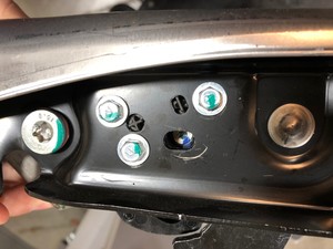 注抬起倾斜电机,靠在座椅框架上。确保座椅框架中可以看到马达定位销。