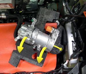- 在未揭下胶带保护条的情况下,将隔音毯试装在空调压缩机上,确保隔音毯与所有支座、管路和电气接口贴合。