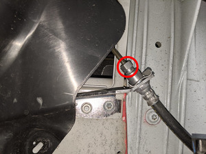 - 拆下将制动器软管固定到左侧前转向节的螺栓