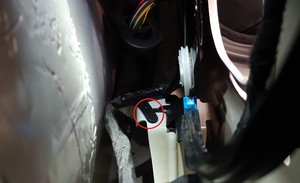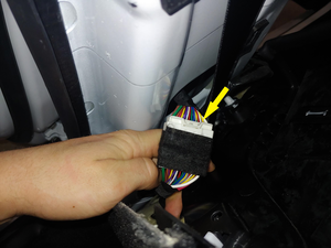 注Slide connector and harness into B-pillar, press firmware to ensure proper sealing