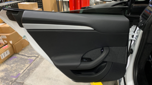 注7x clips, 1x connector, Connect door harness then engage locking tab, Slide top portion of panel into door seal first, then swing bottom into place, Ensure all clips and retainers are seated
