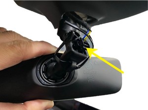 - 连接后视镜电气连接器,然后将电气线束松弛部分沿着镜臂收紧。