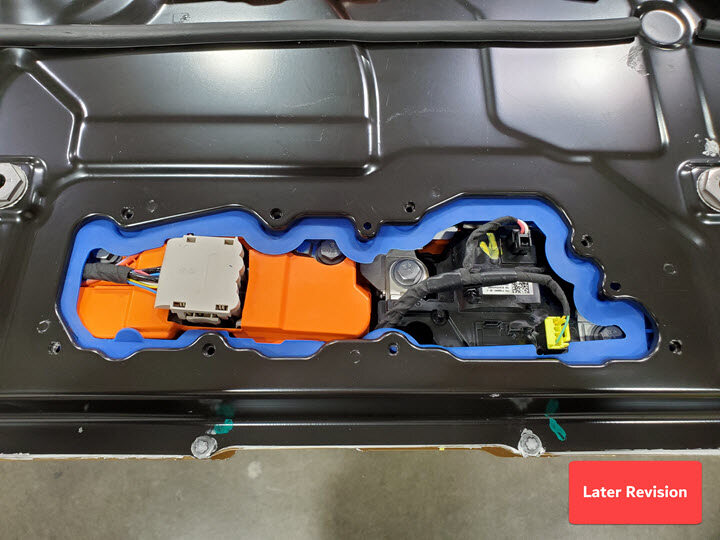 - 小心地将高压电池后检修板放到高压电池上。