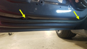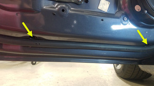 - 拆下覆盖车门内开口处的塞子(2 个),以便为前左侧升降器安装导轨留出空间。