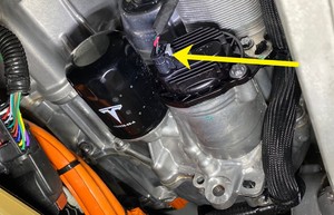 注Tesla 建议在拆卸后换上新的滤油器。凡是存在明显腐蚀或泄漏的滤油器都必须更换。注顺时针旋转, 3 牛米 + 135 度;安装前润滑 3 个密封件