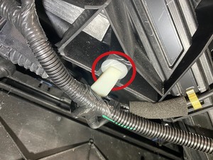 - 松开将前端模块 (FEM) 线束固定到前端支架总成的卡子。