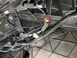 - 连接前备箱盖锁执行机构和电缆总成电气连接器,然后卡入锁片。