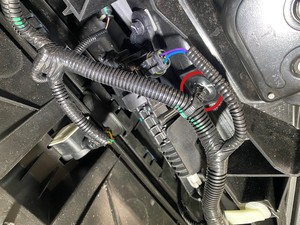 - 安装将前端模块 (FEM) 线束固定到前端支架总成的卡子。