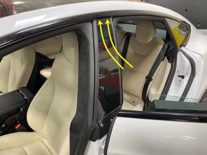 将 B 柱饰板密封条与 B 柱饰板扣紧。