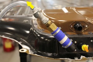 11. 缓慢旋转压力调节器阀门,使其处于打开(水平)位置,并将冷却液从高压电池外壳中排出。
