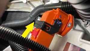 - 小心地松开将后驱动单元逆变器至热交换器软管固定到车辆的夹子 (x4)。