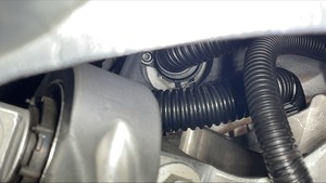 将后驱动单元逆变器至热交换器软管连接到机油冷却器,然后安装软管夹。