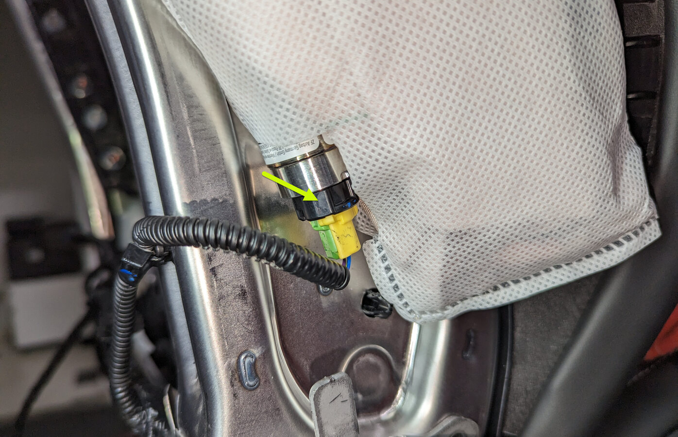 - Release the connector lock, and then disconnect the driver inboard airbag electrical connector.