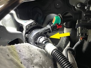 - 松开卡子,将超级歧管至电池供给软管从电池冷却液泵上断开,然后立即堵住两个接头。