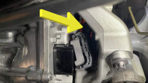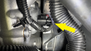 - 从电机支座和冷却液软管下拆出前驱动单元逻辑连接器。