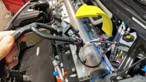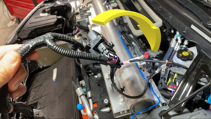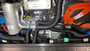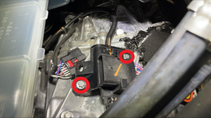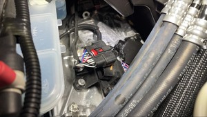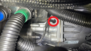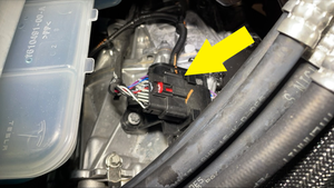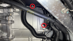 - 将前驱动单元逻辑连接器固定在电机支座和冷却液软管下方。
