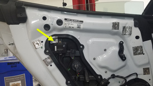 - 将左侧前车把手控制器安装到左侧前车门封闭板总成上。