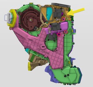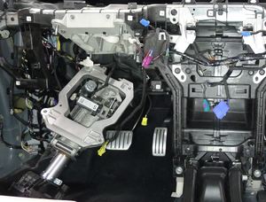注3 个螺钉,T20,3 Nm,8 个锁片;剩余螺钉位于总成底部;松开总成,并小心地将其引导到上部转向柱上