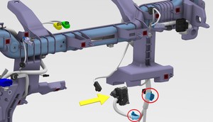 固定左侧减震塔盖旁清洗器软管喷嘴