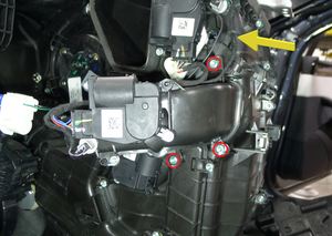 注2 个螺栓,10 毫米,6 Nm;只需要拆下仪表板底座和 HVAC 盒上的螺栓