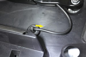 松开左侧减震塔盖旁的清洗器软管喷嘴