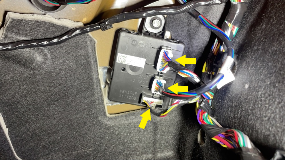 - 断开充电接口电子控制单元 (ECU) 电气连接器 (x3)。