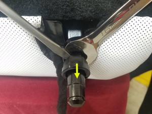 用组合扳手将枢轴销固定,然后用螺丝刀将第二排左侧枢轴静环从总成上拆下。