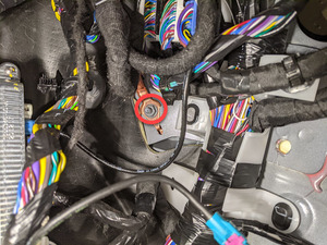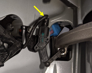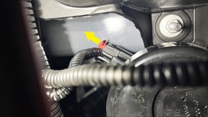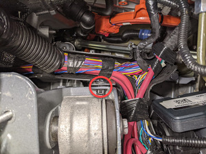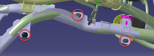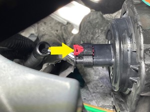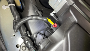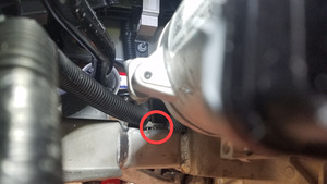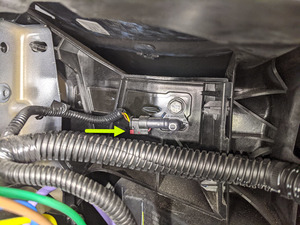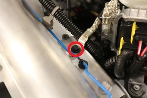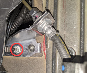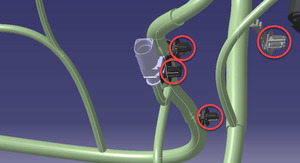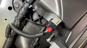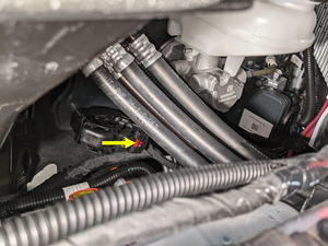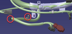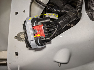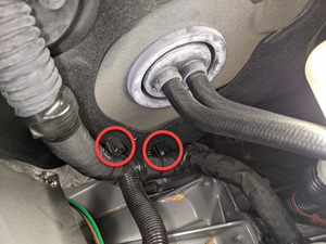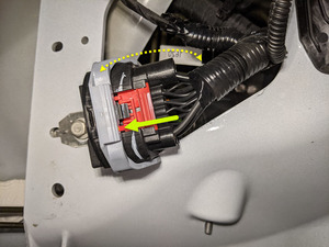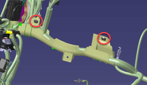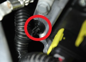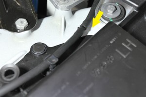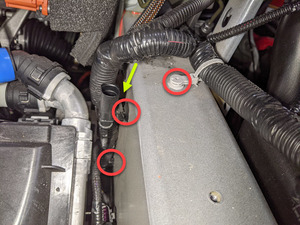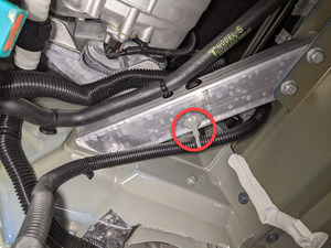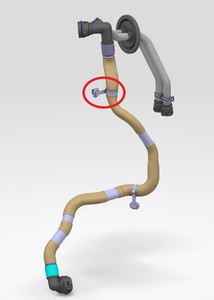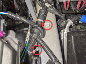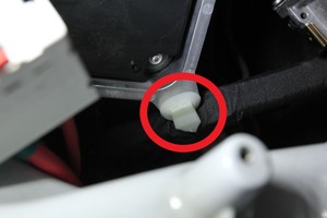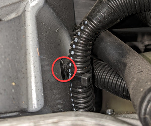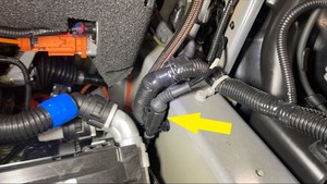 Release clip securing the supermanifold to battery pump supply hose from LV battery