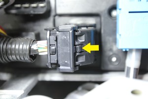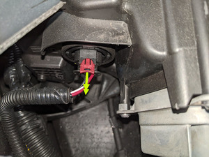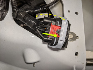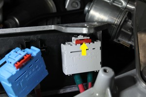 注2x connectors, Lift up and release green locking tab, Pull black connector lock outwards to release connection