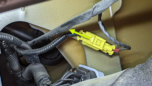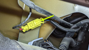 注2x connectors, 6x tabs, 1x clip, Hook tabs before fully seating, Use caution not to damage the connector/harness, Support the knee air bag while connecting the connector