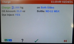 注Select the arrows under "refrigerant charge", Enter refrigerant amount of 1.02 kg (1020 g)