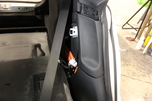 - 将LH C 柱下部饰板放置在 C 柱上,然后紧固将饰板固定到车辆的卡子(8 个)。