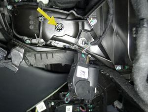 - 拆下副驾位脚部空间盖板。盖板 - 脚部空间 - 副驾位(拆卸和更换)。