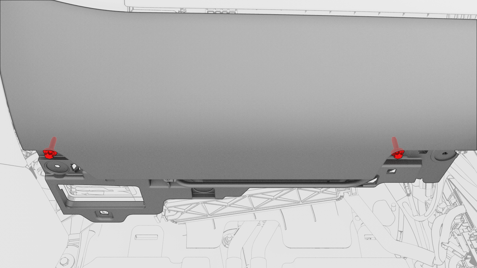 支撑起副驾位膝部气囊总成,同时连接电气连接器(2 个)。