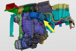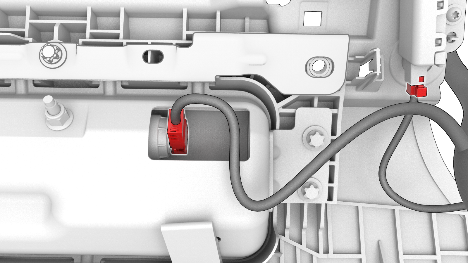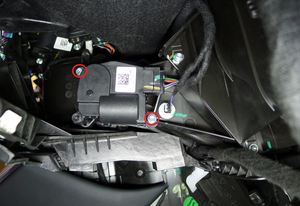 - 将右侧脚部空间风管执行机构放置在车辆中,然后连接电气连接器。