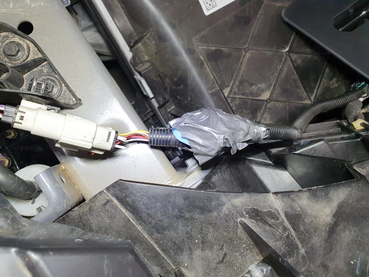 Use harness tape to attach the front radar sensor connector to the frunk harness.