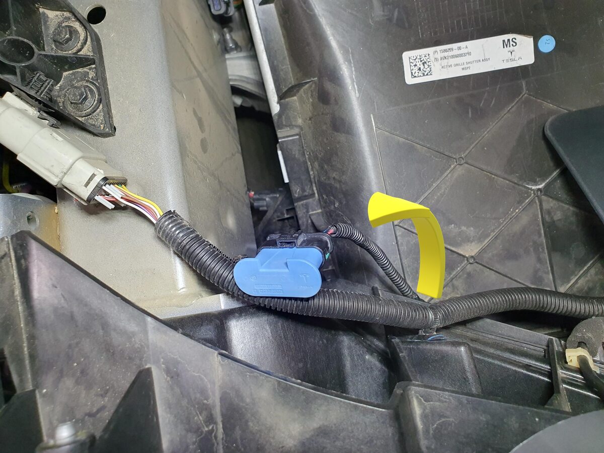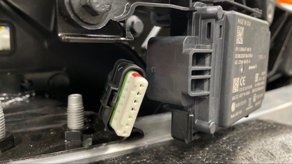 - Install the dummy plugs (x2) on the front radar sensor and the sensor connector.
