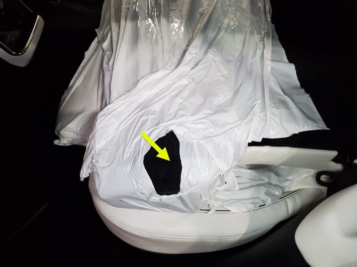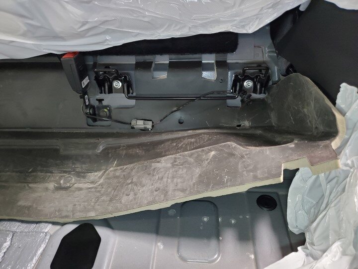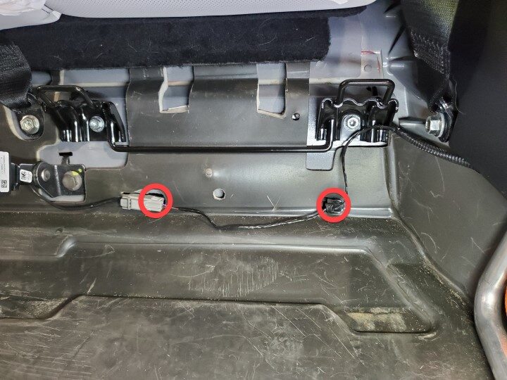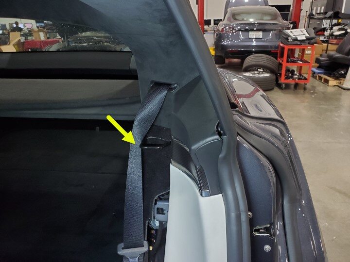 RH 2nd row seat belt behind the seat back, and then move the seat back to the upright