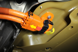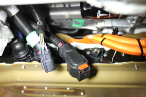 - Release the locking tab, and then disconnect the logic connector to the HV battery.