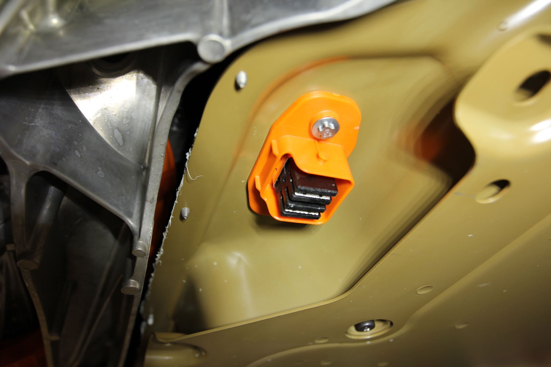 flat and square to the HV battery RH HV header, secure the release lever to the closed