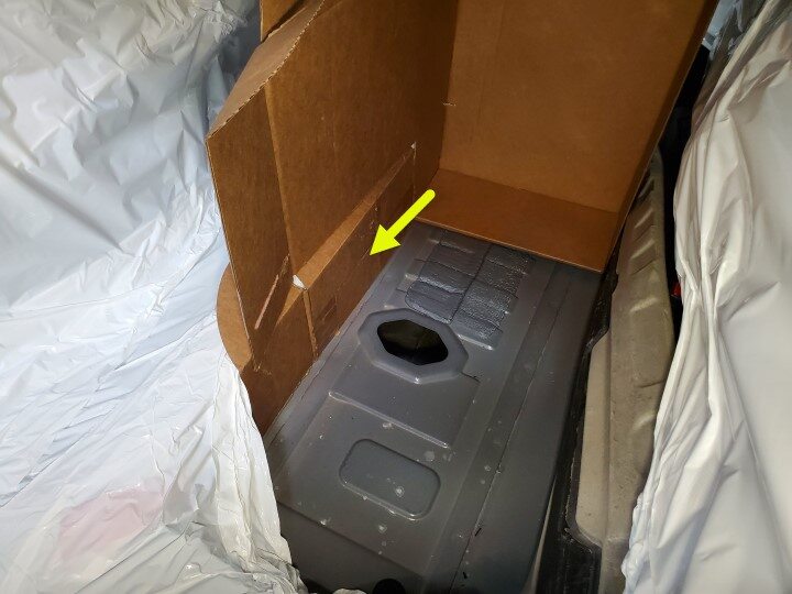 - Plaid vehicles only - Remove the foldable funnel and absorbent material from under the power conversion system coolant return hose.