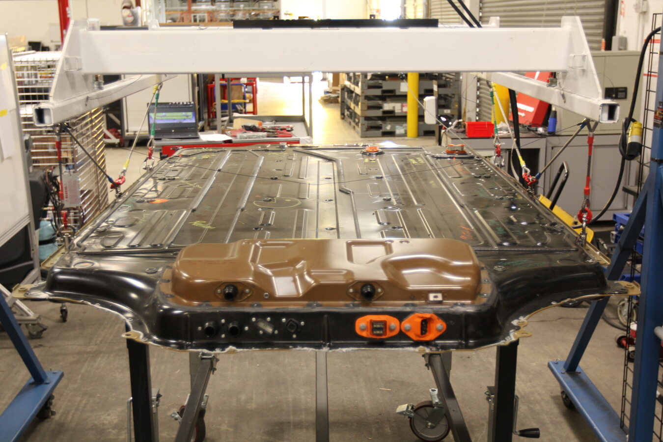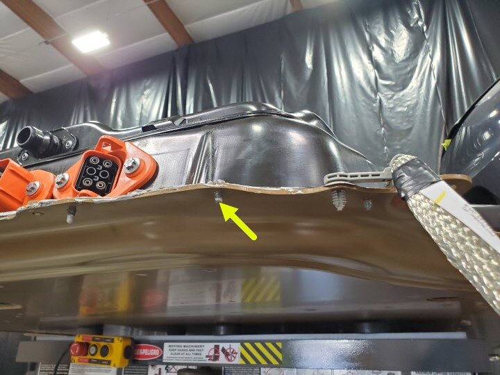 use a power tool to remove the center bolts (x4) securing the HV battery.
